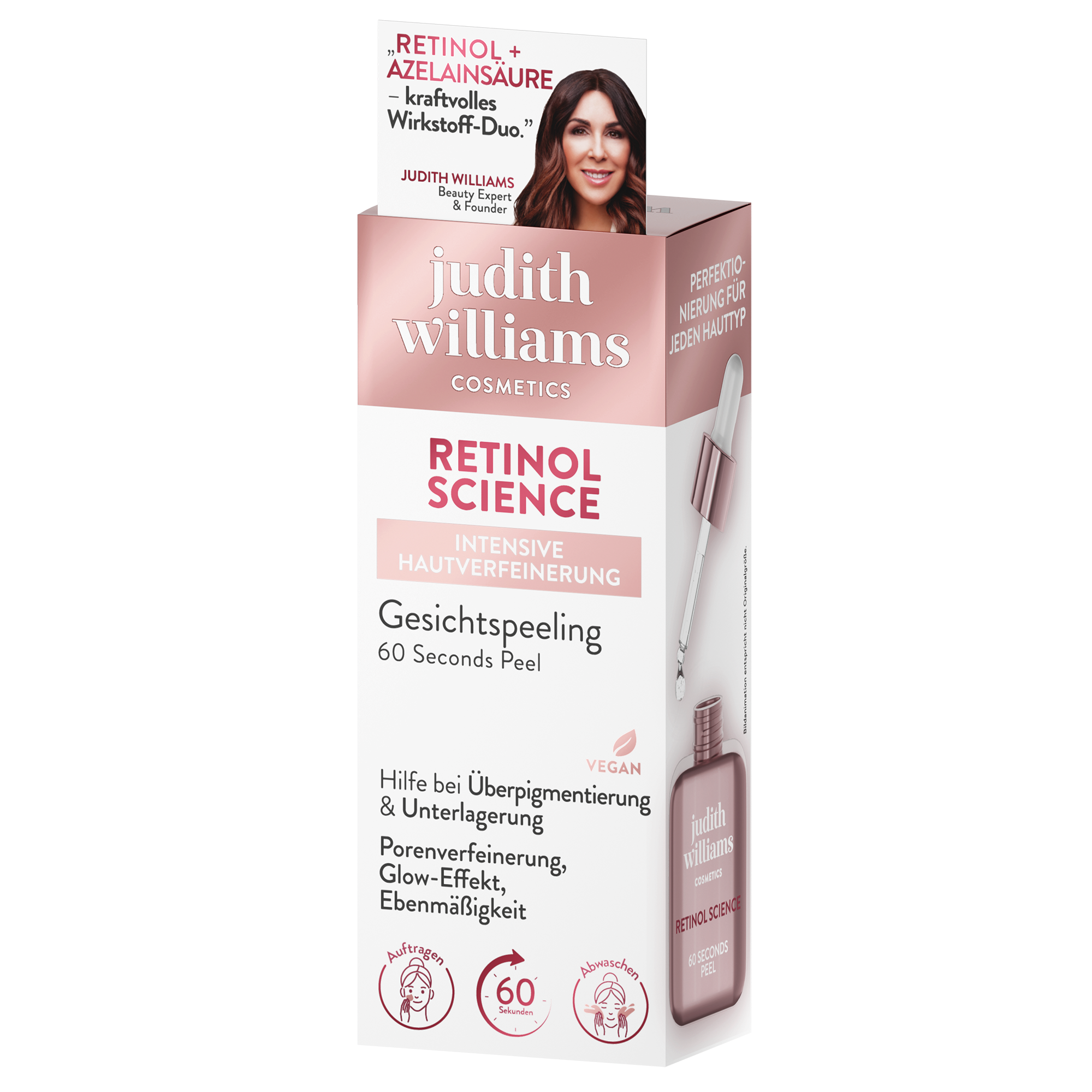Da Retinol in den tieferen Hautschichten arbeitet, macht sich die volle Wirkung erst mit kontinuierlicher Anwendung bemerkbar. Erste Anzeichen wie Trockenheit oder leichtes Spannen sind normal und Teil des Hauterneuerungsprozesses. Daher solltest du dein Peeling mit einer feuchtigkeitsspendenden Pflege kombinieren, um so deine Haut optimal zu unterstützen.