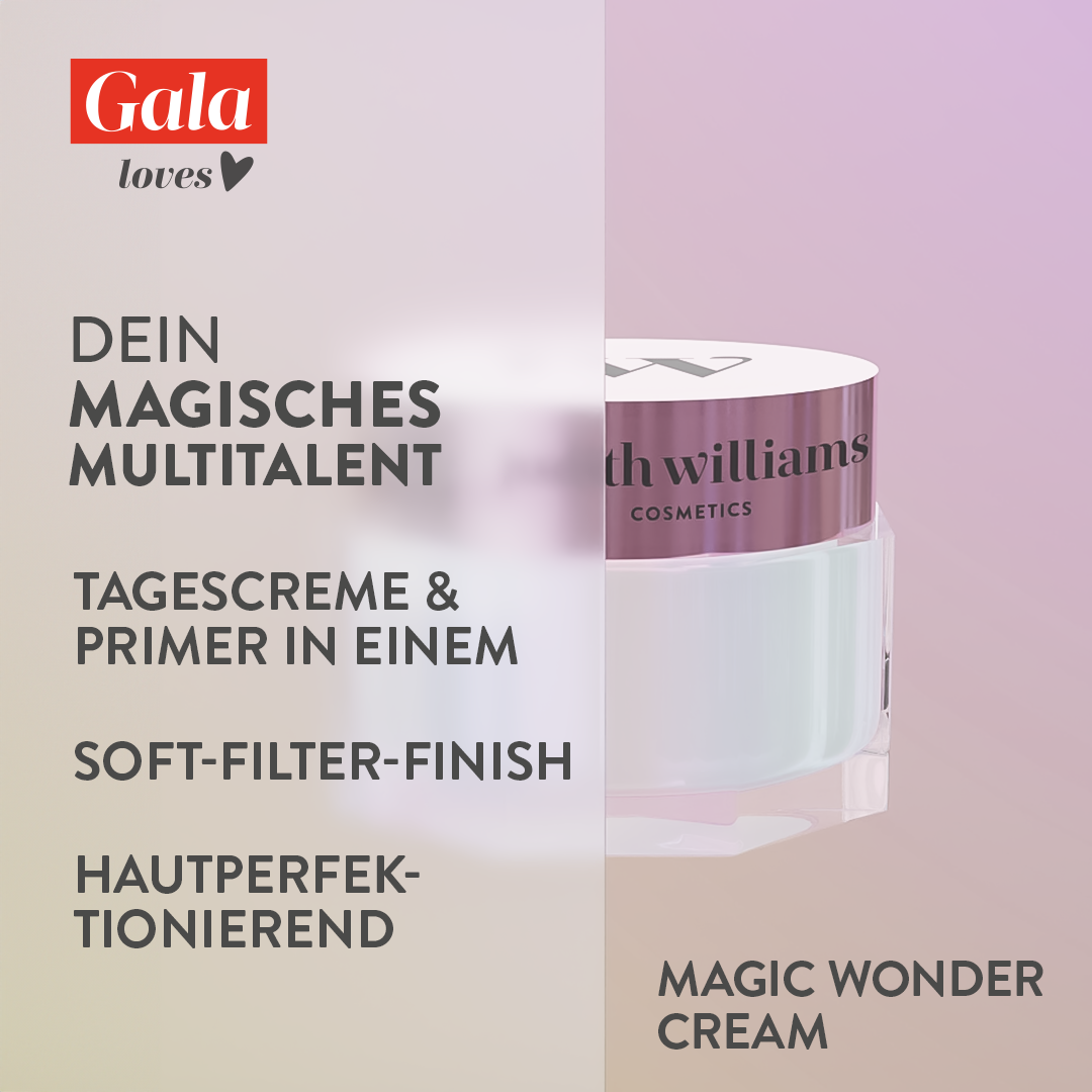 Was, wenn dein Geheimnis kein Filter, sondern deine Haut ist? Die Magic Wonder Cream ist dein magisches Multitalent – als Tagespflege pur oder als Primer unter dem Make-up. Ihre innovative Formulierung schenkt dir ein sofortiges Soft-Filter-Finish, das die Haut sanft weichzeichnet, Poren optisch verfeinert und das Hautbild sichtbar perfektioniert. Hochwirksame Hyaluronsäure spendet intensive Feuchtigkeit, polstert sanft auf und unterstützt die Hautstruktur nachhaltig. Das Ergebnis: ein ebenmäßiger, glatter Teint mit jugendlicher Ausstrahlung.